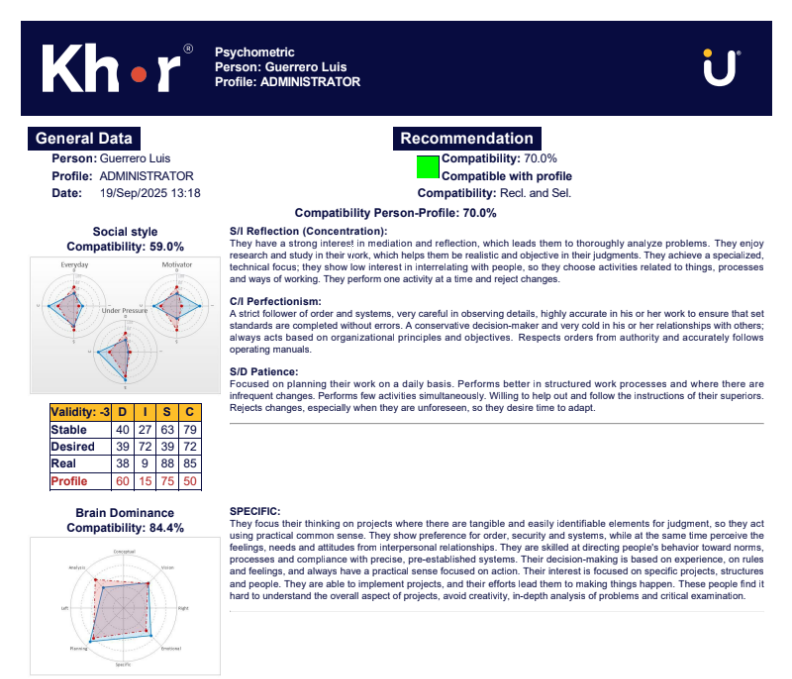 Remember, the assessments are group by a profile you can define in Khor. A profile can contain 1 or more assessments, and you can define how they are used to obtain the compatibility with the profile.