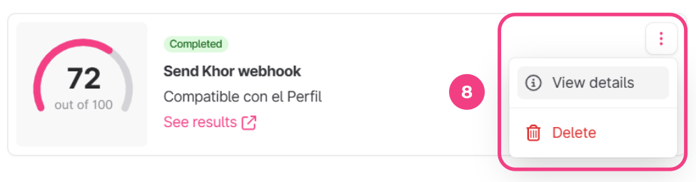 The score presented in the chart is the compatibility percentage. Also you can see a few details by selecting the three dots and selecting “View details” (8) and a small form will present the details.